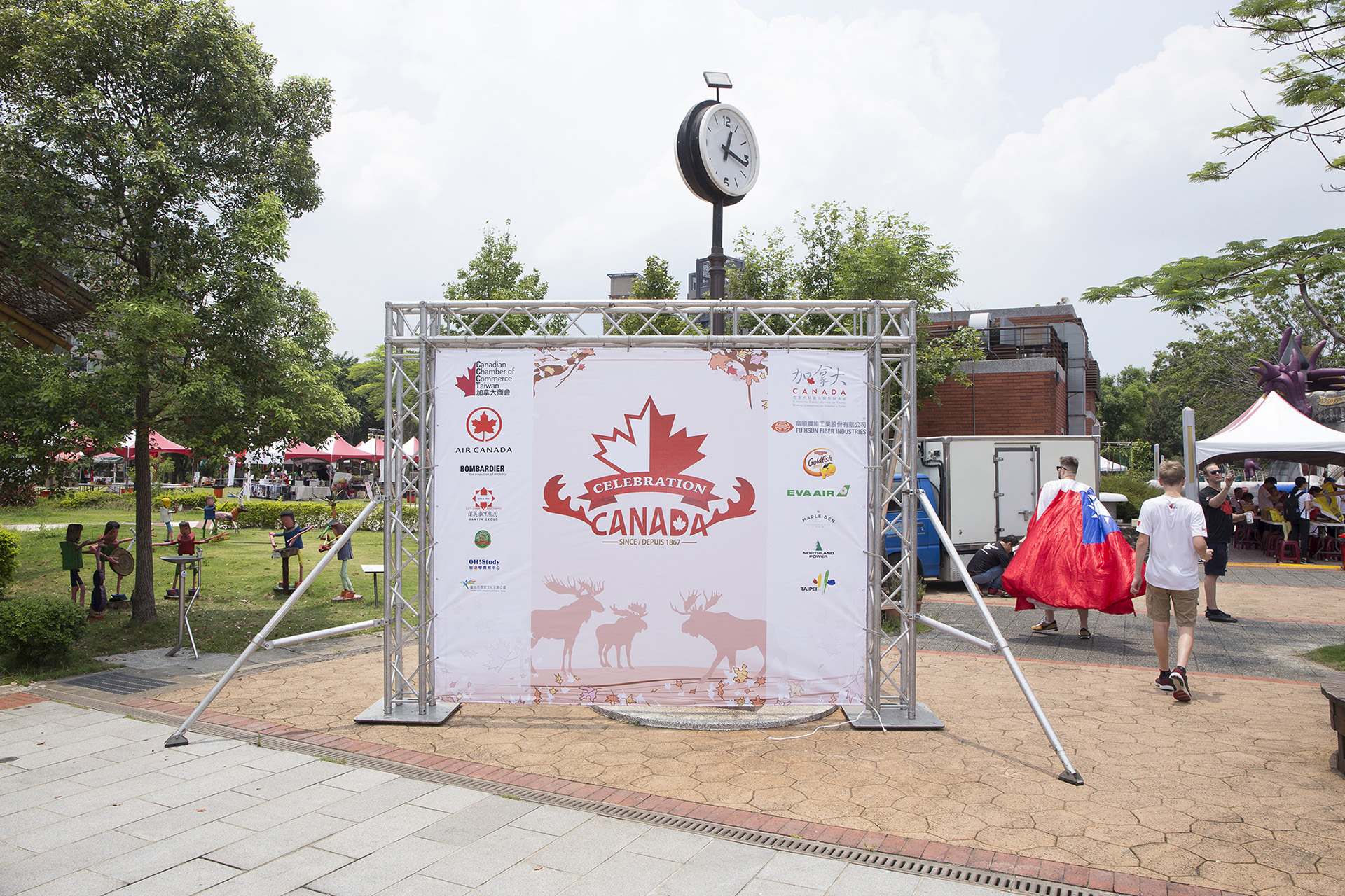 行銷策略╱臺灣加拿大商會每年於7月1日加拿大國慶節所舉辦的歡慶會為全臺最大型的外國活動,更是為駐臺的加拿大人一年一度的盛事,設計上需具備濃郁該國風格呼應目的,吸引更多的旅客一同狂歡。